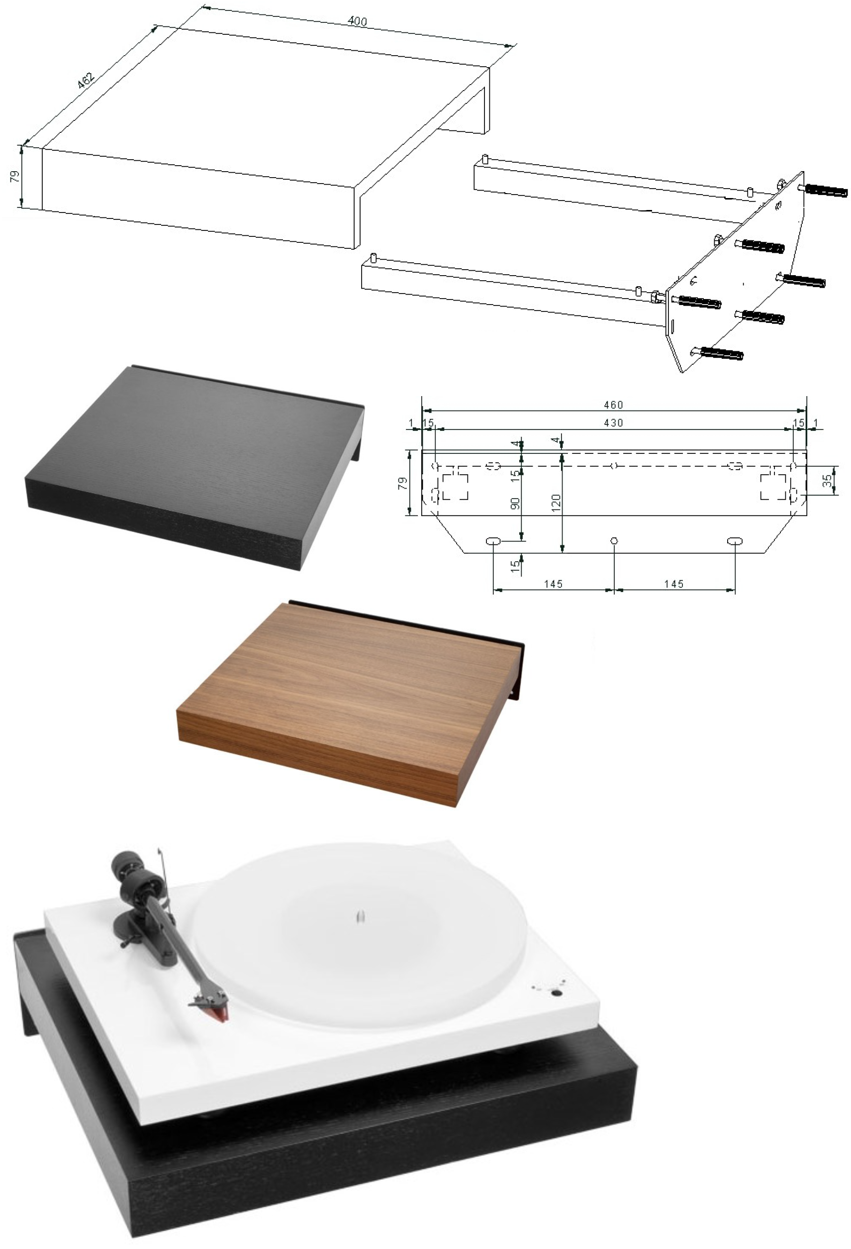Półka ścienna zapewnia izolację gramofonu od możliwych zakłóceń powstałych w wyniku niestabilności podłogi. Podstawę tworzy metalowa konstrukcja, którą można przymocować nie tylko do ścian z cegły lub betonu, lecz także do ściany zbudowanej z płyty gipsowej lub wiórowej.