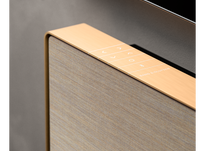 Przyciski sterujące są płynnie zintegrowane, stanowiąc wizualną kontynuację nieskończonej ramy. Wyraźna przerwa między ramką a materiałową osłoną podkreśla kontrast między aluminium a ciepłą tkaniną. Beosound Stage wnosi ekspresyjny minimalizm do każdego wnętrza - jednocześnie maksymalizując wrażenia z oglądania telewizji.